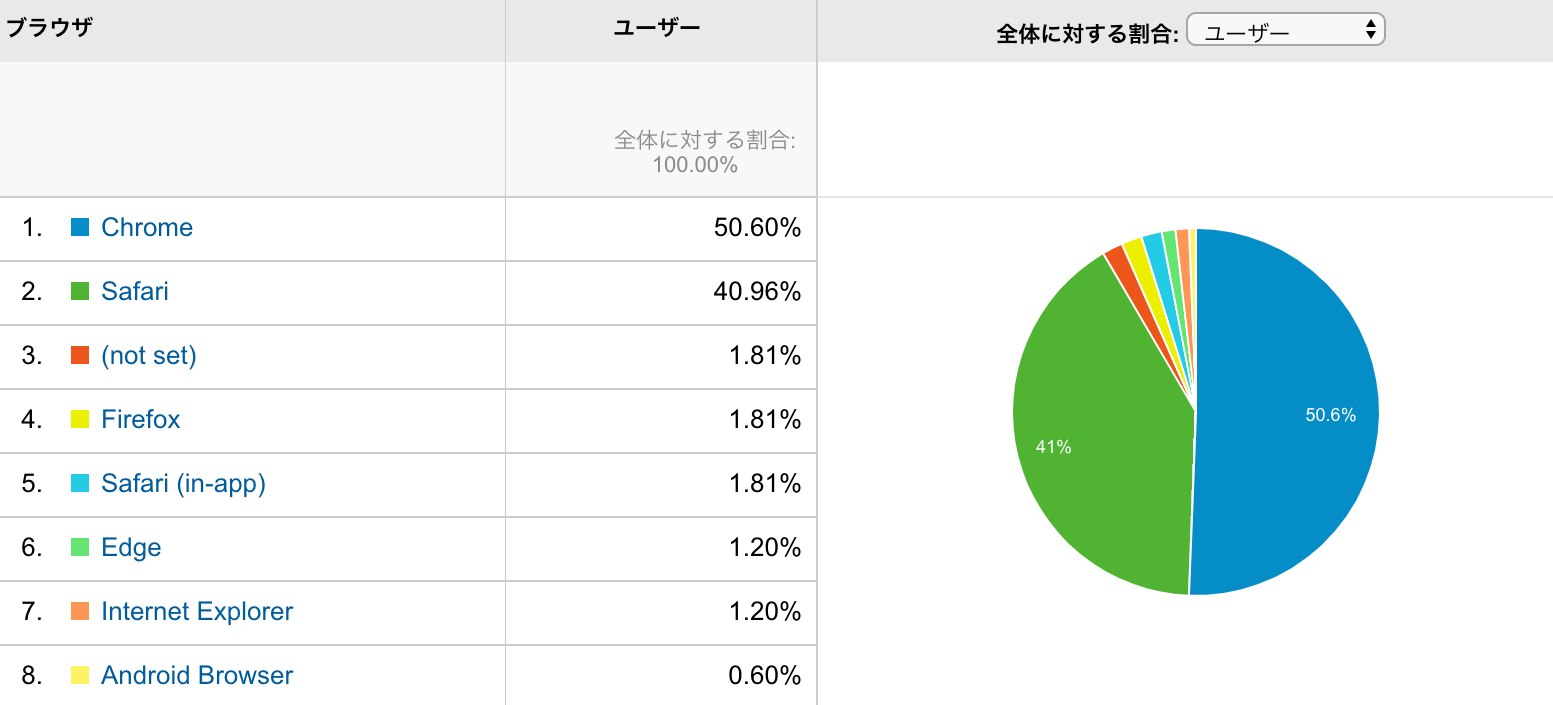 IEとAndroidブラウザ(ChromeじゃなくてAndroid 4.xとかまでの古いのに入ってたやつ)を単純に足しても2%未満なのでやっぱり無視していいよね。むしろどういう経緯で僕のサイトにたどり着いたのか気になるけどw