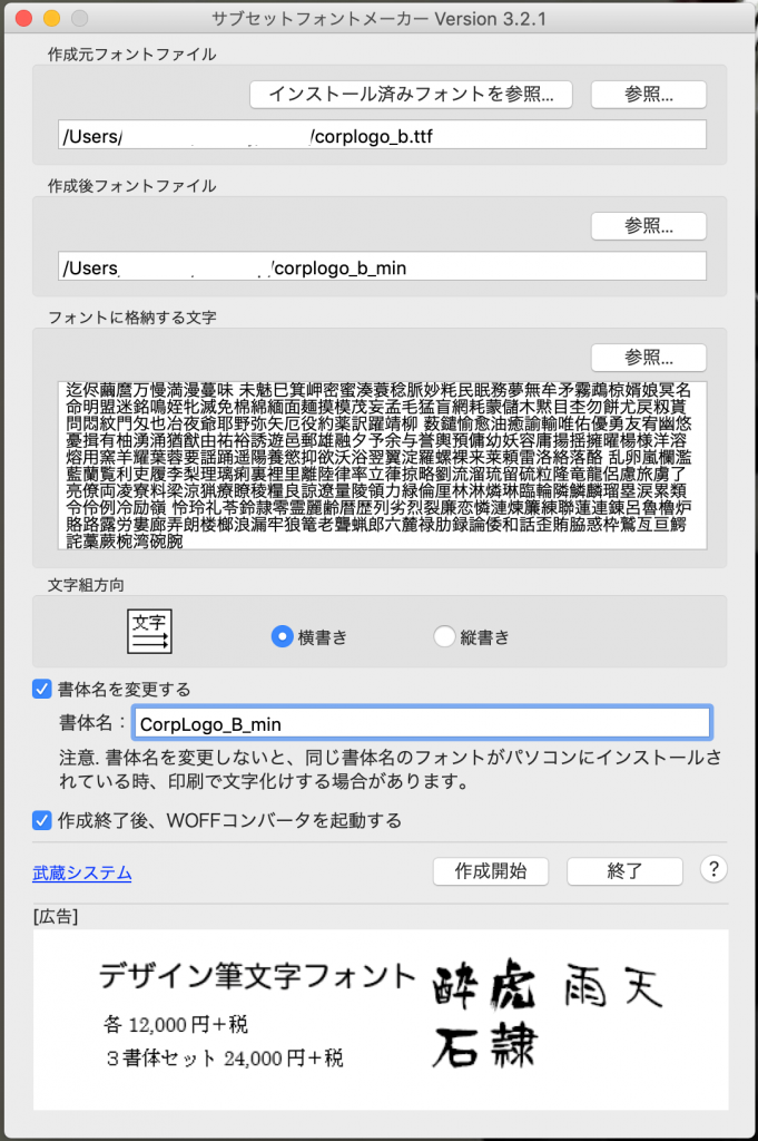 サブセットフォントメーカーというソフトにぶち込むだけの 簡単なお仕事 。