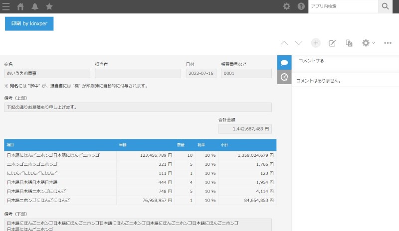見積書とかをkintone使って管理してて、印刷画面をもうちょっとどうにかしたいなぁって方にちょうどいいサービスになってると思います。無料で使えるので試してみては!