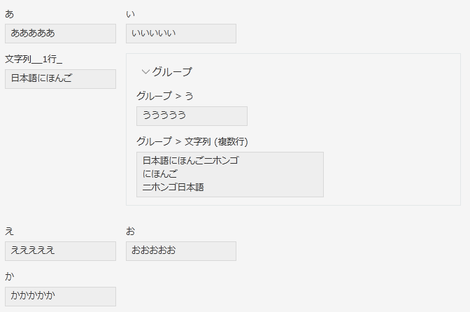 対象のフィールドコードに書き換えて、アプリに適用するだけで、こんな感じでフィールドを横並びにすることができます。